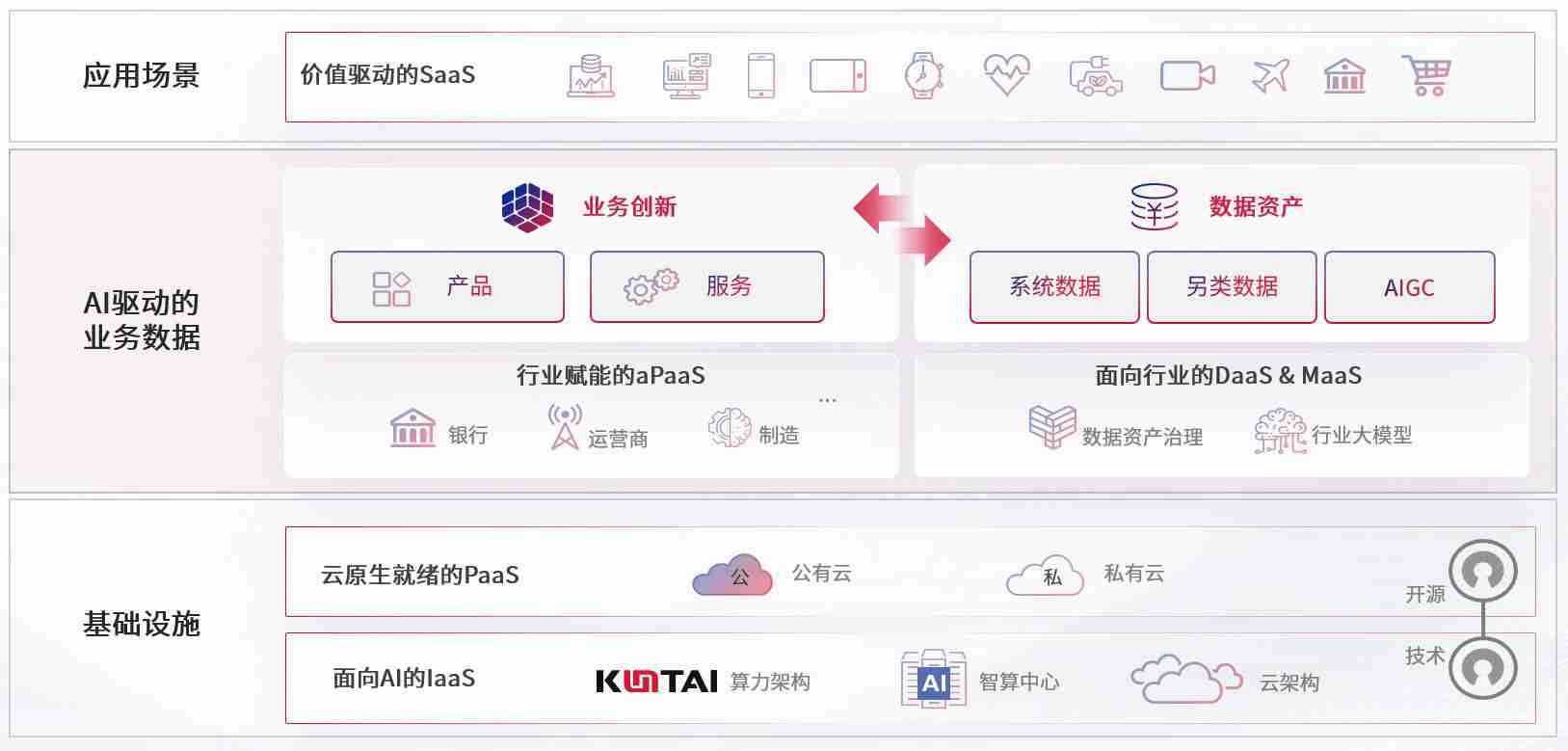 数字时代,,,,围绕企业数字化转型的关键要素,,,,Z6尊龙时凯数码开创性的提出数云融合战略和技术体系框架,,着力在云原生、、、、数字原生、、AI原生和信创产业上架构产品和服务能力,,,为处在不同数字化转型阶段的快消零售、、汽车、、、、金融、、、医疗、、政企、、教育、、、、运营商等行业客户提供泛在的敏捷IT能力和融合的数据驱动能力,,构建跨界融合创新的数字业务场景和新业务模式,,助力企业级客户建立面向未来的核心能力和竞争优势,,全面推动社会的数字化、、、智能化转型升级。。。