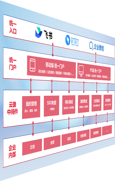 对协作平台提供支持服务,,支持企业应用与协作平台对接,,包含组织同步、、、、消息集成、、、、待办集成等。。。。支持目前主流的协作平台:钉钉、、企微和飞书。。。